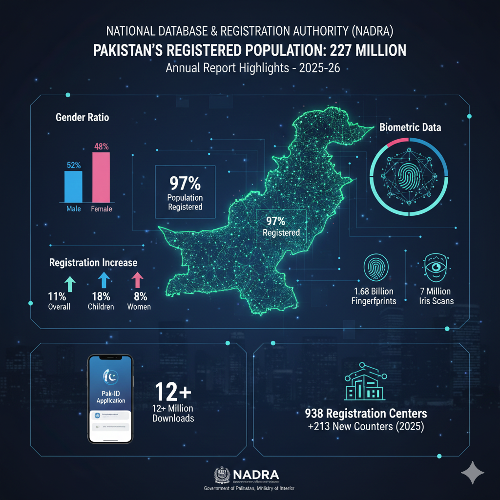 Pakistan’s National Database and Registration Authority (NADRA) has released amazing details of its biometric database, which puts it in the ranks of the world’s largest digital institutions. According to a NADRA spokesperson, the organization currently has facial recognition data of 170 million citizens. In addition, the database has stored 1.68 billion fingerprints and 7 million iris scan data, which makes the security and verification process very reliable.